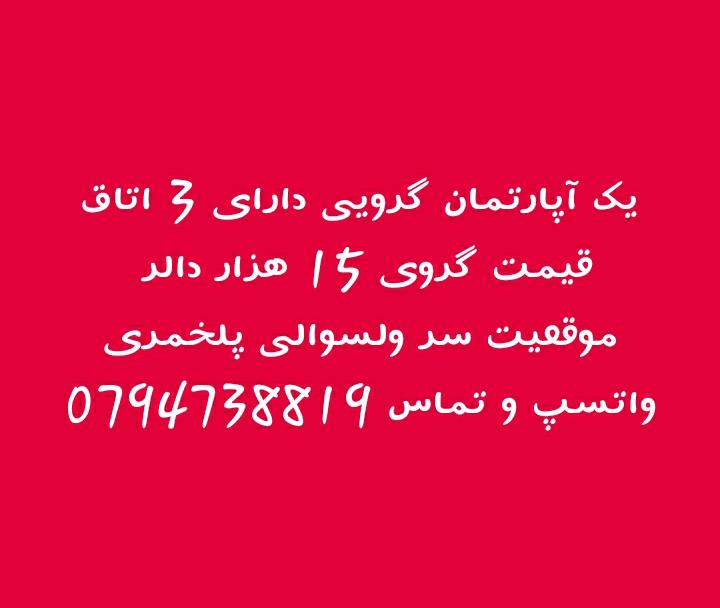 آپارتمان سه اطاقه _گرویی_پلخمری، بغلان