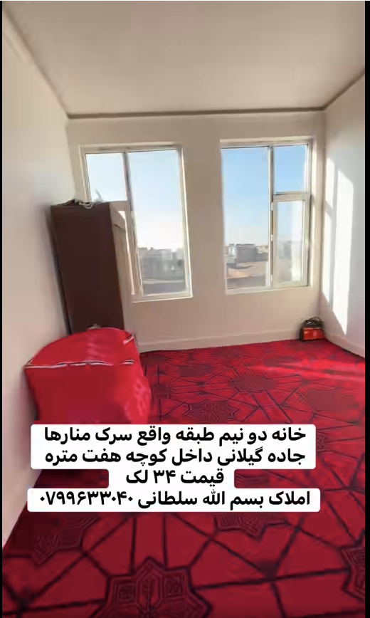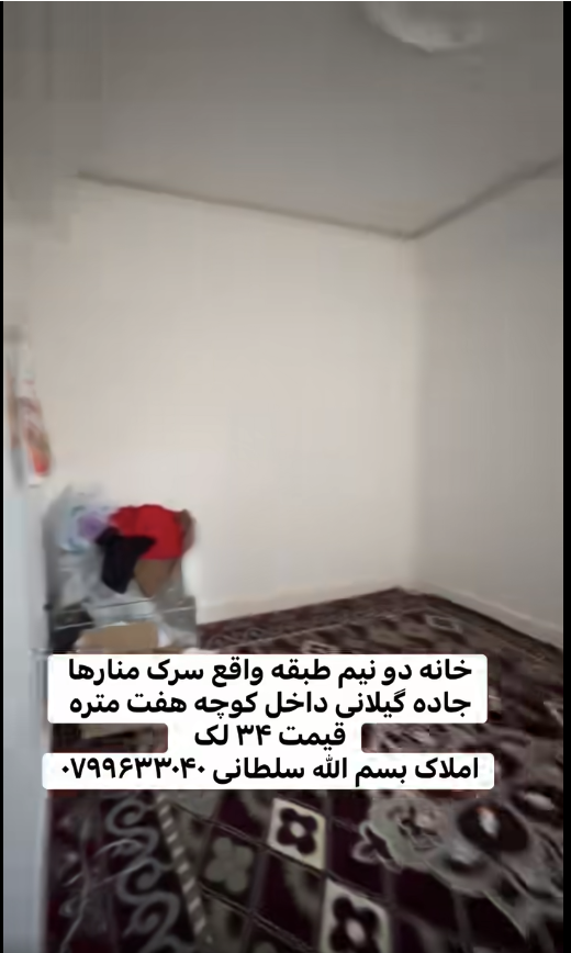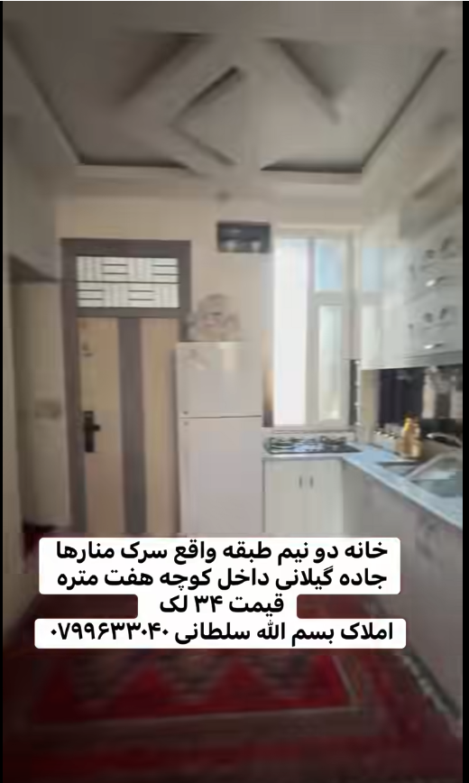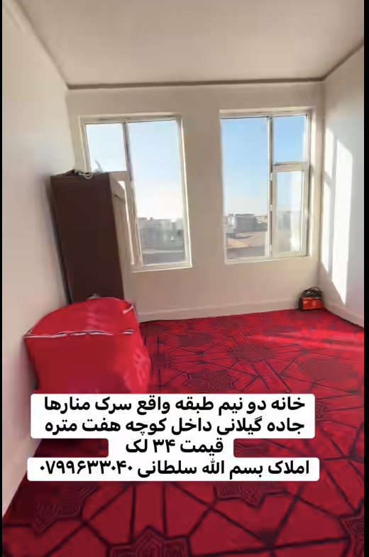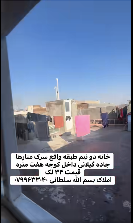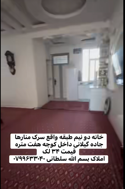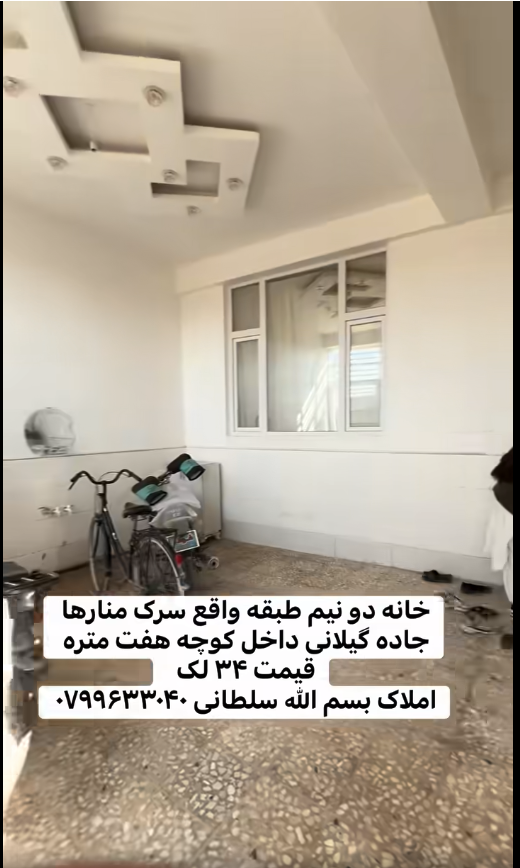 خانه ای فروشی – سه اتاقه – سرک منار ها جاده گیلانی داخل کوچه ای هفت متره