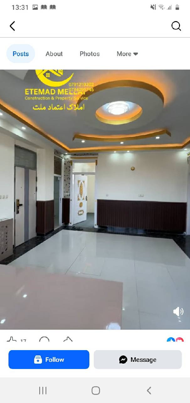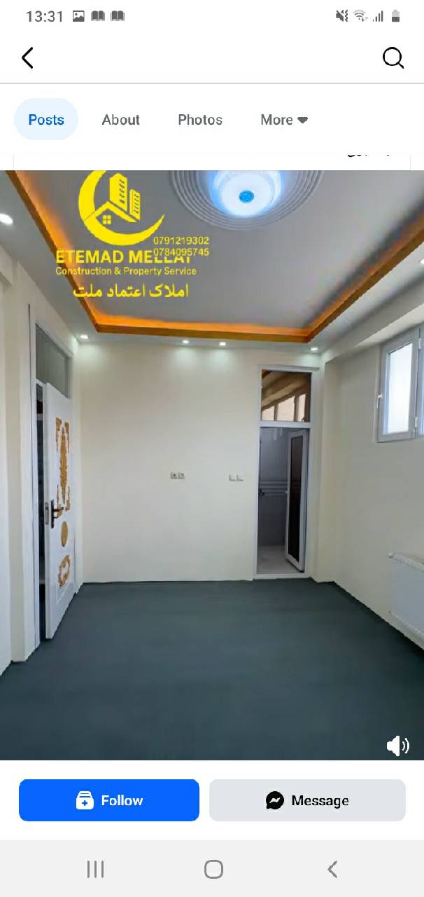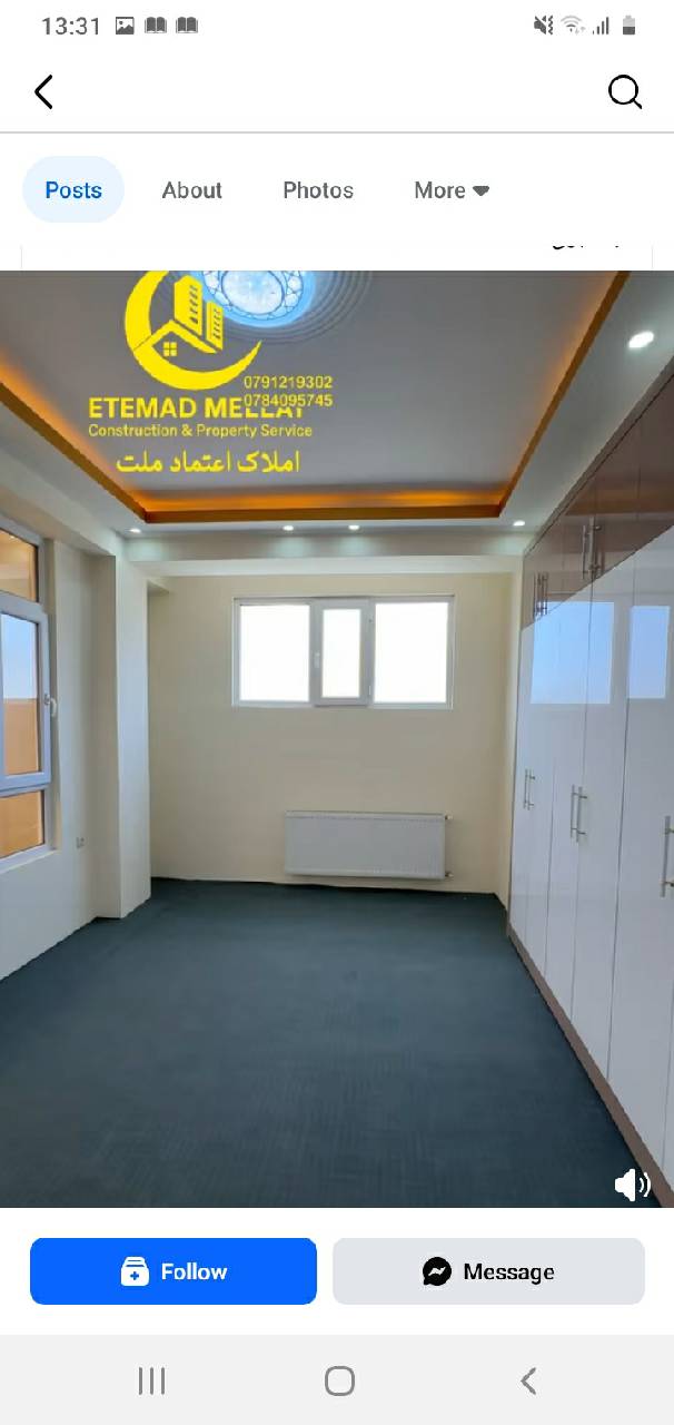 ⸻🏢 فروش آپارتمان (VIP) سه اطاقه – فرصت طلایی اگر بهدنبال یک آپارتمان لوکس، مجهز و آماده سکونت در یکی از بهترین مناطق کابل هستید، این گزینه یک انتخاب بینظیر برای شماست.📍 موقعیت:لیسه مریم، کوچه دوم– کابل، افغانستان(از مناطق باارزش و مناسب بودوباش)🏠 مشخصات آپارتمان: • منزل دوم • سه اطاق خواب مجهز همراه با یک هال بزرگ و شیک • ۲ باب تشناب معیاری • آشپزخانه کاملاً مجهز • دیکوریشن مدرن با لایتینگ زیبا • طراحی لوکس و معیاری • بالکن با نمای عالی⚙ امکانات: • سیستم مرکز گرمی نصبشده • پارکینگ موتر در تهکوی📐 مساحت: حدود ۱۲۰ متر مربع💰 قیمت فروش:۵۸٬۰۰۰ هزار دالر امریکایی✍️ با اندک جورآمد برای خریدار واقعی📝 نوت مهم:معامله به پول افغانی، نظر به نرخ روز صورت میگیرد.📌 اطمینان معاملات:تمامی معاملات بهصورت قانونی و شفاف، از طریق دفتر رهنمای معاملات اعتماد ملت انجام میشود.📞 شمارههای تماس (تماس / واتساپ): ۰۷۹۱۲۱۹۳۰۲. ۰۷۸۴۰۹۵۷۴۵. 🏢 آدرس دفتر معاملات:کابل، ناحیه ۱۵، گذر ۳، سرک مسجد نبوی املاک معاملات اعتماد ملت